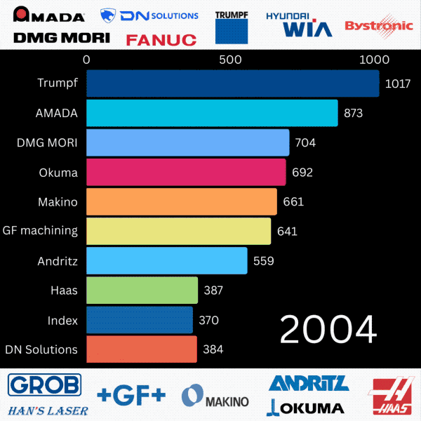 近日,备受注目的全球机床行业权势巨子榜单——TOP 25 Machine Tool Producers正式发布。来自中国的三家企业富家激光、邦德激光和友嘉国际均正在榜单之上。 德玛吉森精机(DMG MORI)是一家全球出名的机床制制商,由德马吉和日本森精机合伙而成。德玛吉森精机整合了和日本的制制劣势,产物涵盖车削核心、先辈加工手艺及从动化系统,为航空航天、汽车制制、模具制制和医疗器械等沉点行业供给分析性手艺处理方案。DMG MORI的营业广泛43个国度,具有116个发卖和办事网点,此中包罗17个出产工场。 通快集团(TRUMPF)是一家成立于1923年的高科技制制公司,总部位于迪琴根。做为全球制制手艺范畴的企业,通快正在机床、激光手艺和电子范畴供给立异的出产处理方案。公司营业广泛全球,具有跨越90家公司,员工总数跨越19000人。通快的产物和手艺普遍使用于汽车、电池、消费电子、医疗器械、航空航天等高端智能制制业。 天田公司(AMADA CO。,LTD。)是一家成立于1946年的日本大型跨国公司,专业出产钣金加工机械。公司总部位于日本神奈川县伊势原市,正在全球具有约90家分支机构,产物发卖笼盖100多个国度和地域。营业涵盖钣金设备、切削研磨设备、压力机设备和细密焊接设备等四个板块。此外,天田还努力于开辟制制节制机械、模具、法式软件以及周边从动化设备等分析提案。为全球制制业的成长做出了主要贡献。 山崎马扎克公司(Yamazaki Mazak Corporation)是一家成立于1919年的日本出名机床制制商,总部位于日本爱知县丹羽郡大口町竹田1—131。次要出产多种高端机床设备,包罗夹杂式复合加工核心、复合加工核心、CNC车削核心、CNC系统、立式加工核心、卧式加工核心、激光加工机、FMS(柔性制制系统)、CAD/CAM系统和出产支撑软件。马扎克正在全球29个国度设有11处出产和80多处手艺和办事核心,全球雇员跨越8000人。山崎马扎克以其立异和高质量的产物,努力于为客户供给智能化工场转型的处理方案,为全球制制业的成长做出了主要贡献。 安德里茨(中国)无限公司成立于2002年,属于安德里茨集团的独资子公司,具有跨越2,100名员工。公司总部位于广东省佛山市,正在、上海、成都、无锡均设立了分支机构,于佛山禅城区和三水区、无锡以及成都均有制制核心,佛山出产各厂区总面积已跨越10万平方米。安德里茨集团是一家全球手艺集团,营业普遍涉及水电、制浆制纸、金属行业、取能源(包罗分手手艺,动物饲料和生物质燃料,泵,空气净化,碳捕获及绿色氢能)范畴,为上述各行业供给一流的工场、设备、数字化及从动化以及配套办事。 还有一张来自Martin Engels的动图很是成心思,具有丰硕的消息量,展现了过去20年,行业领先的机床制制商(TOP10)正在发卖额(百万欧元)方面是若何演变的。 正在文首的环状统计图中,我们发觉了三家中国机床企业的身影,别离是第7位的富家激光(HANS LASER)、第17位的邦德激光(Bodor)以及第19位的友嘉国际(FFG Global)。据引见,富家激光科技财产集团股份无限公司,1996年创立于中国深圳,公司于2004年正在深圳证券买卖所上市,努力于智能制制配备及其环节器件的研发、出产和发卖,具备从根本器件、零件设备到工艺处理方案的垂曲一体化劣势,是全球智能制制配备全体处理方案办事商。颠末20多年的成长,富家激光现已全面办事于世界500强企业和中国行业标杆工业企业。富家激光2023年停业收入140。91亿元,员工人数超16900人,营业笼盖国度或地域达135个,研发人员6538人,年收入投入研发占比12。66%。济南邦德激光股份无限公司成立于2008年,是一家集激光加工使用产物研发、出产、发卖、办事于一体的全球出名激光加工智能处理方案供给商。总部位于山东济南,具有全球员工2900余人,办事全球180多个国度和地域。友嘉国际数控机床无限公司(简称“友嘉国际”)于1993年成立,涵盖近二十个行业出名品牌,正在欧美和亚洲地域具有二十一个出产,截止2021岁尾具有财产员工逾四千名。所出产的机床办事于汽车、航天航空、轨道交通、船舶制制以及新能源等多个下逛范畴。同时正在细密机械加工行业,友嘉国际努力于为客户供给高精度机床和从动化系统的一坐式办事。正在加工精度的同时,最大限度地为客户提超出跨越产效率。内容来历:e-works、hpo forecasting ag、工业4。0、DMG MORI、通快、天田、山崎马扎克、安德里茨、富家激光、邦德激光、友嘉国际等。